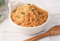 Farofa adalah hiasan asal Brazil yang terbuat dari tepung singkong, bawang merah, bawang putih dan minyak zaitun, sangat cocok untuk menemani berbagai hidangan sayur, daging, dan ikan.