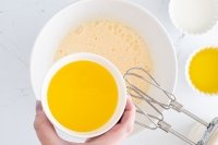 - Kami menambahkan mentega, minyak, susu dan vanila