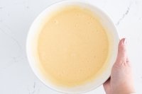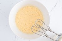 - Kocok gula dengan telur hingga volumenya dua kali lipat.